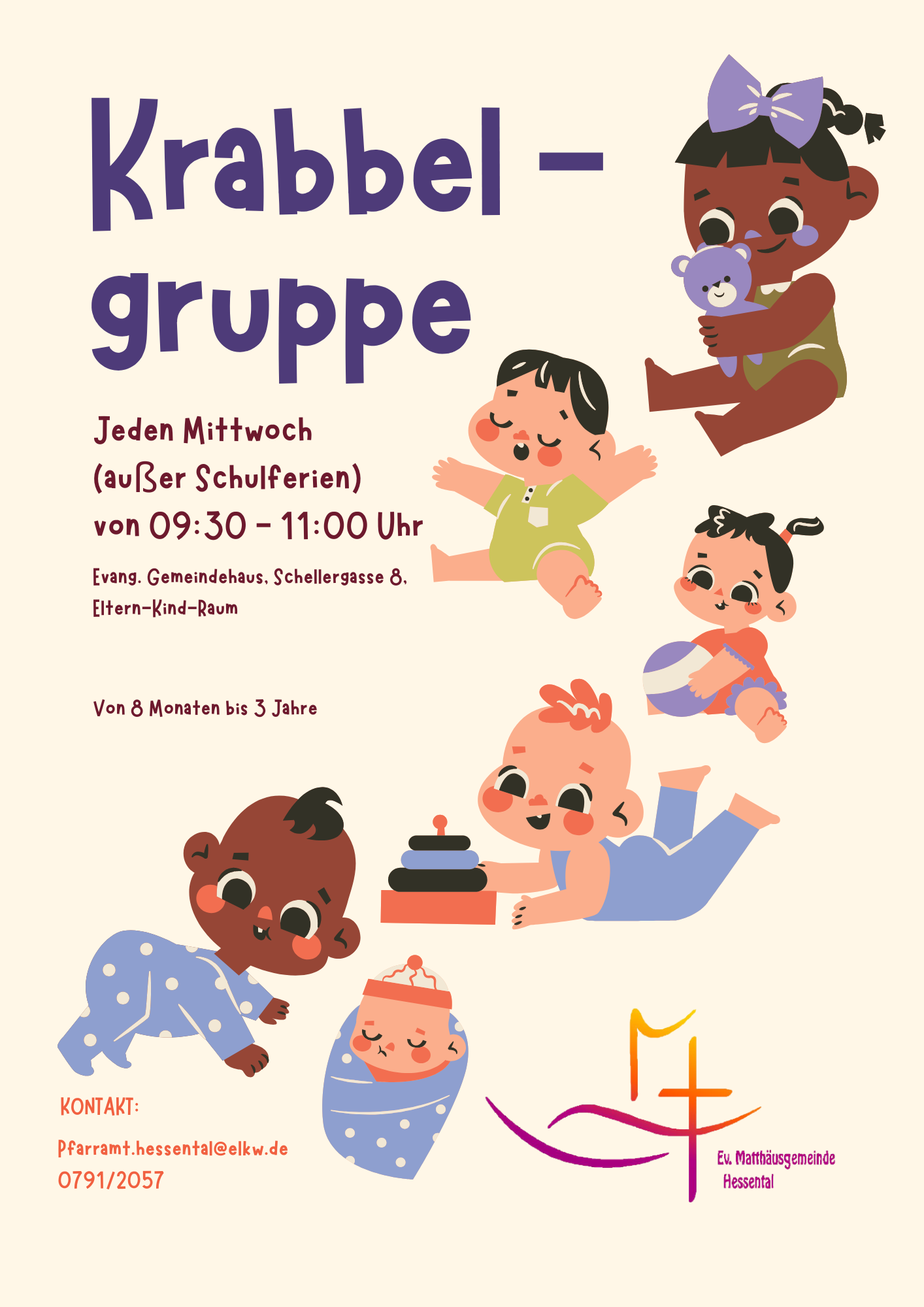 Jeden Mittwoch von 9.30 bis 11.00h (außer in den Schulferien) treffen wir uns im Obergeschoss des evangelischen Gemeindehauses.